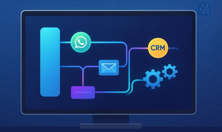 Modelamos una solución personalizada basada en tus flujos reales. Seleccionamos herramientas como WhatsApp, CRMs, correos, y más para garantizar escalabilidad y eficiencia.